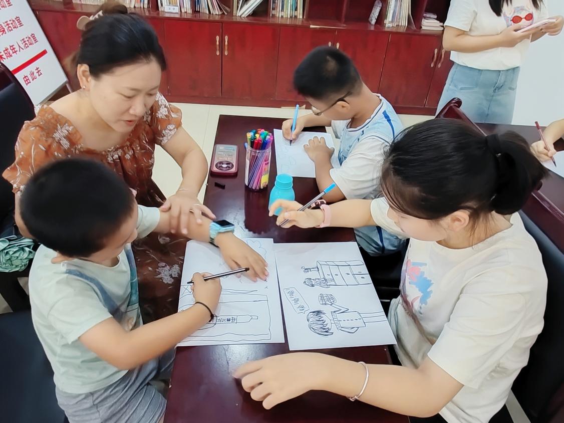 阅读引导与分享环节,孩子们领取书籍片段,在社工与志愿者带领下阅读,聚焦尼尔斯的转变,随后分组交流阅读感受。科学探秘环节,围绕“主人公为何能骑鹅飞行”展开讨论,工作人员同步讲解鸟类飞行原理,实现文学与科学的融合。小组展示环节,孩子们以小组为单位绘画创作,呈现阅读收获并进行集体展示。