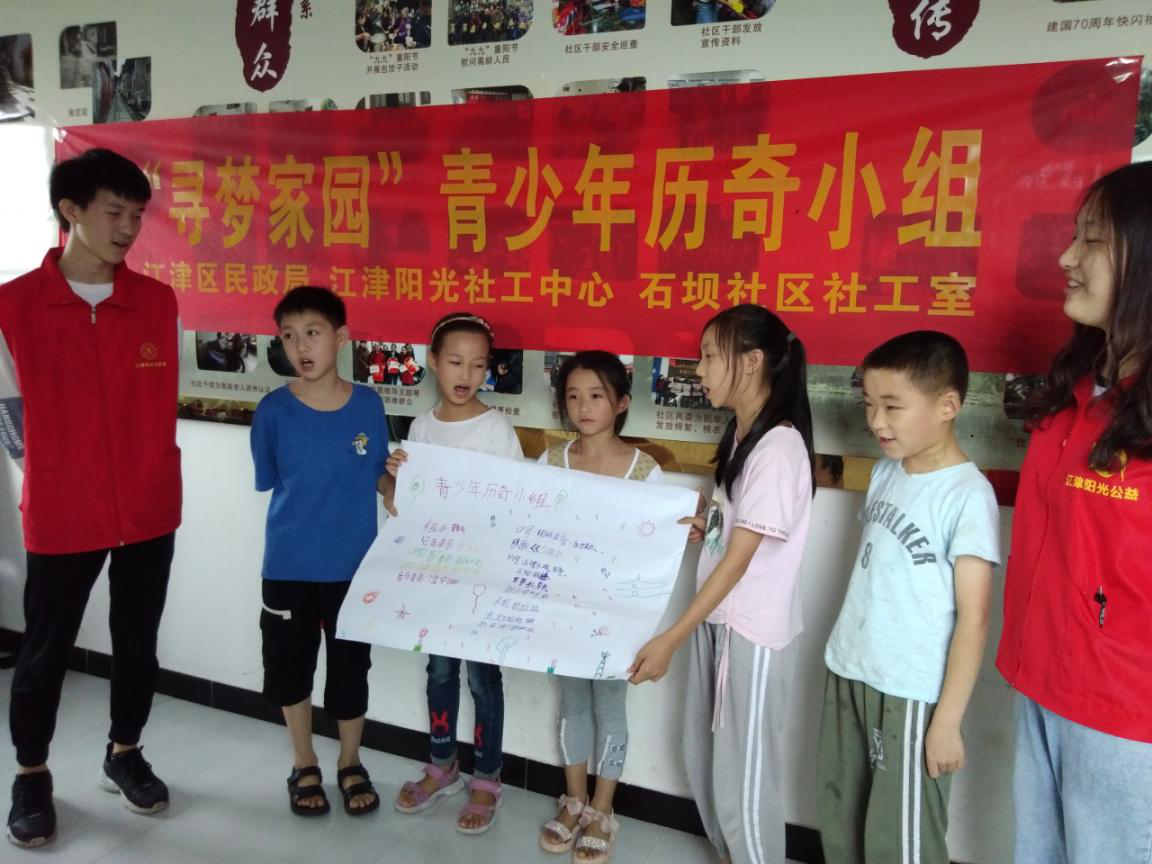 为丰富石坝社区儿童的课余生活,提高儿童的对社区的归属感,2020年7月17日,石坝社区社工室携手石坝社区开展了石坝社区社会工作服务项目“寻梦家园”青少年历奇小组第一节小组活动——“交个朋友吧”。经过社区青少年儿童自愿报名,最终确定的7人参加本次小组活动。
