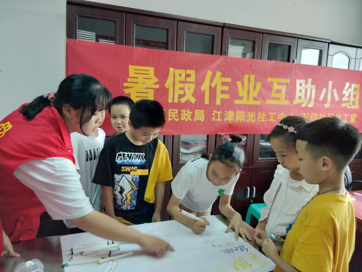 为了培养石坝社区的学生合作学习的精神,养成自觉良好的学习态度,互相取长补短,共同进步,使各基础层次的学生均有提高。2020年7月17日,在江津区民政局、江津阳光社工中心的指导下,在石坝社区的支持下,石坝社区社工室在石坝社区小组活动室开展了暑假作业互助小组活动。本节小组共有7名儿童参加。