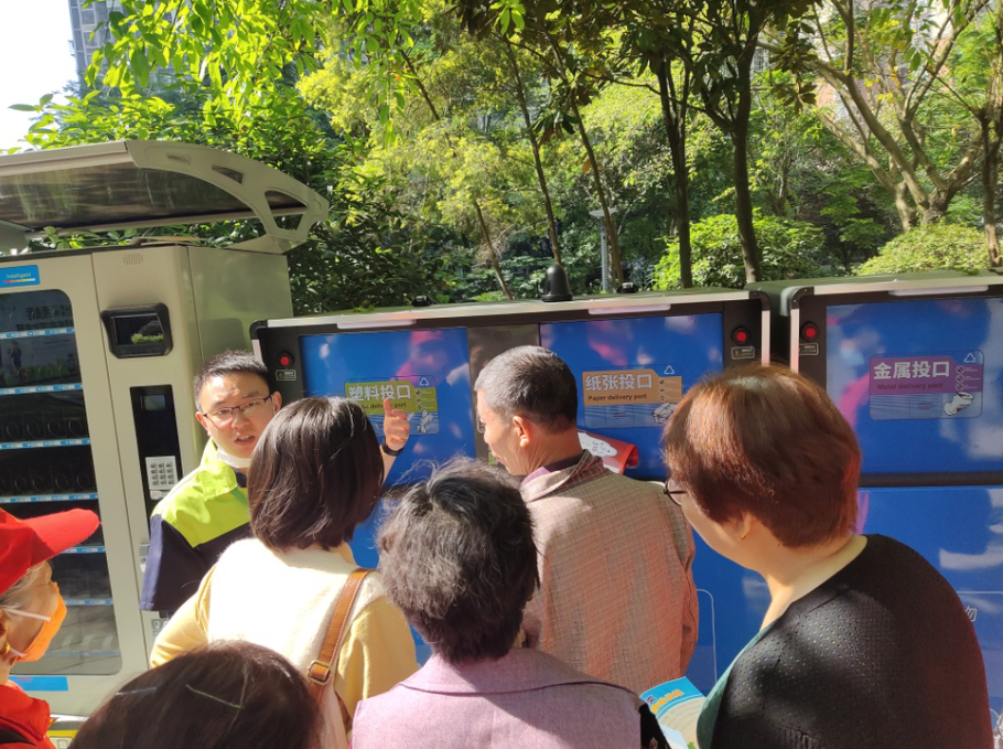 据了解,建宇爱上小区是鼎山街道辖区首个智能化生活垃圾分类管理示范小区,在早期便已投放了2套智能垃圾分类收集设备,每栋楼下摆放厨余垃圾回收箱,共9个。新型的智能设备集智能操作系统、自动称重、大数据平台等互联网高科技于一身,并且居民还能通过垃圾分类投放累积积分,将积分兑换生活用品,为居民提供高效、便捷的垃圾分类投放服务。同时,小区实行严格的生活垃圾分类执行标准,在每台智能设备旁配备专业的垃圾分类指导员,阳光社工带领志愿者定期、定点为小区居民开展入户宣传、问卷调查等垃圾分类宣传活动,确保垃圾分类宣传到点、到户、到人。
