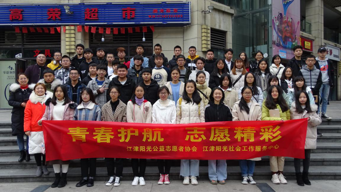 为让志愿者更了解志愿服务内容和精神,提升志愿者的凝聚力和荣誉感,展现志愿者风采。2019年11月30日,由江津阳光公益志愿者协会,重庆市江津阳光社会服务中心联合举办的“青春护航,志愿精彩”志愿者培训在江津金科世界城阳光社会工作服务中心3楼举行,本次活动共有50名大学生志愿者参加。